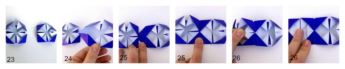26. Now that the two corners of the two units are the one inside the other, fold them together inwards.