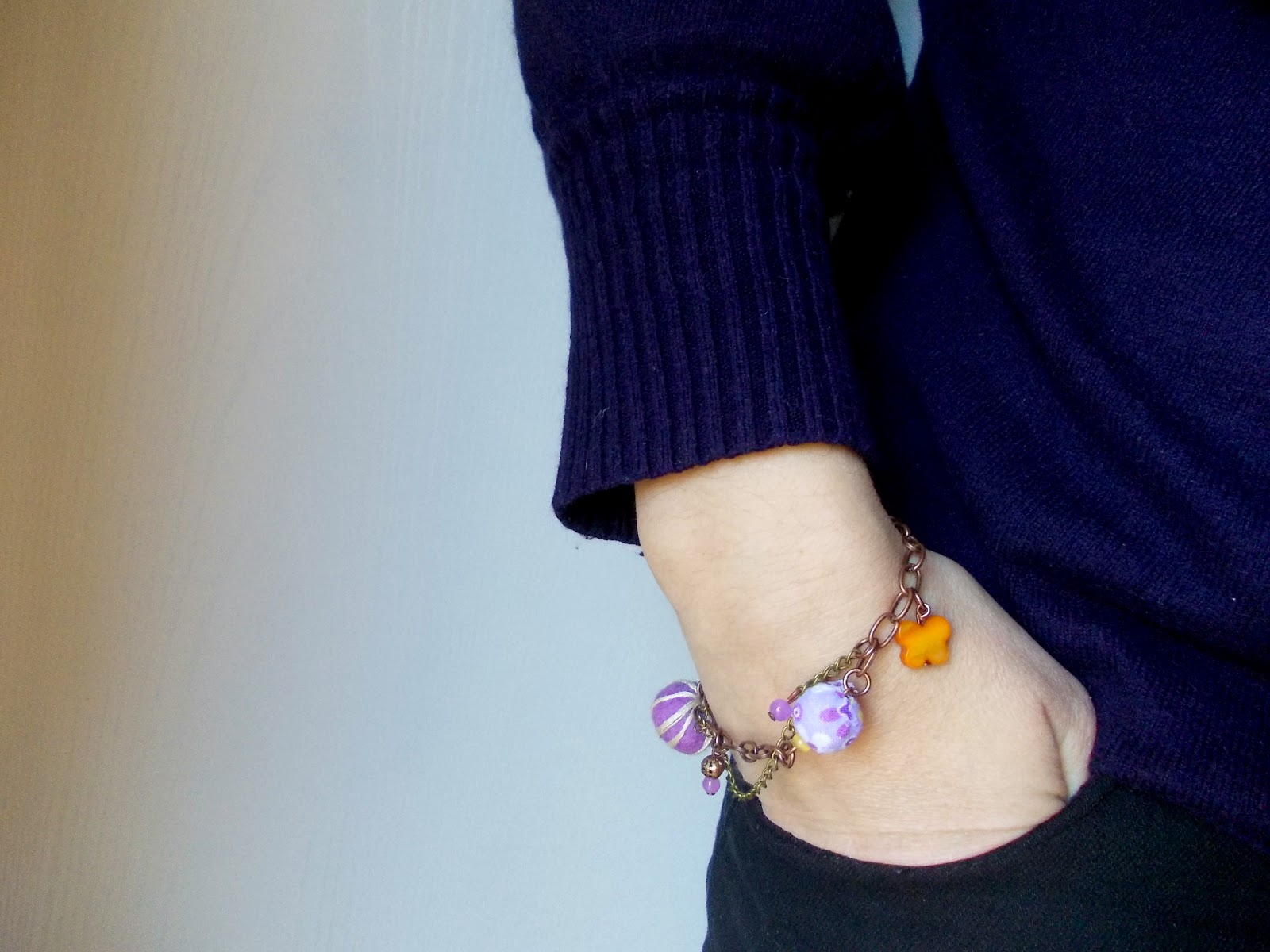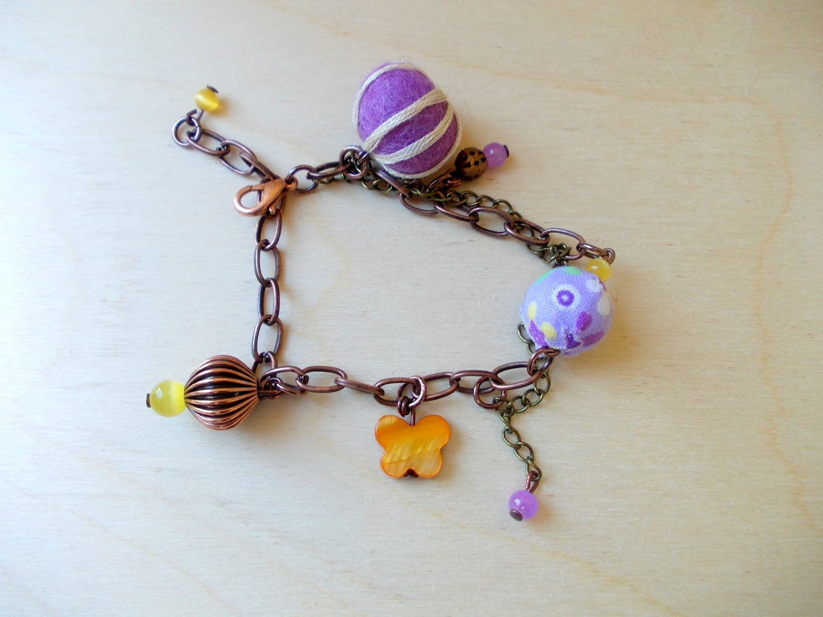 And after my experiments completed, I had to use them… this is the easy part! My first creation is a chain bracelet with beautiful beads, a coral butterfly and a felt bead with the letter K for my great friend Konstantina! I hope she will like it!