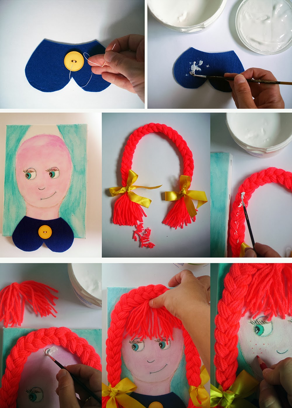 imaginary face. Put the other yarn that is tied in the middle as a bang in the
