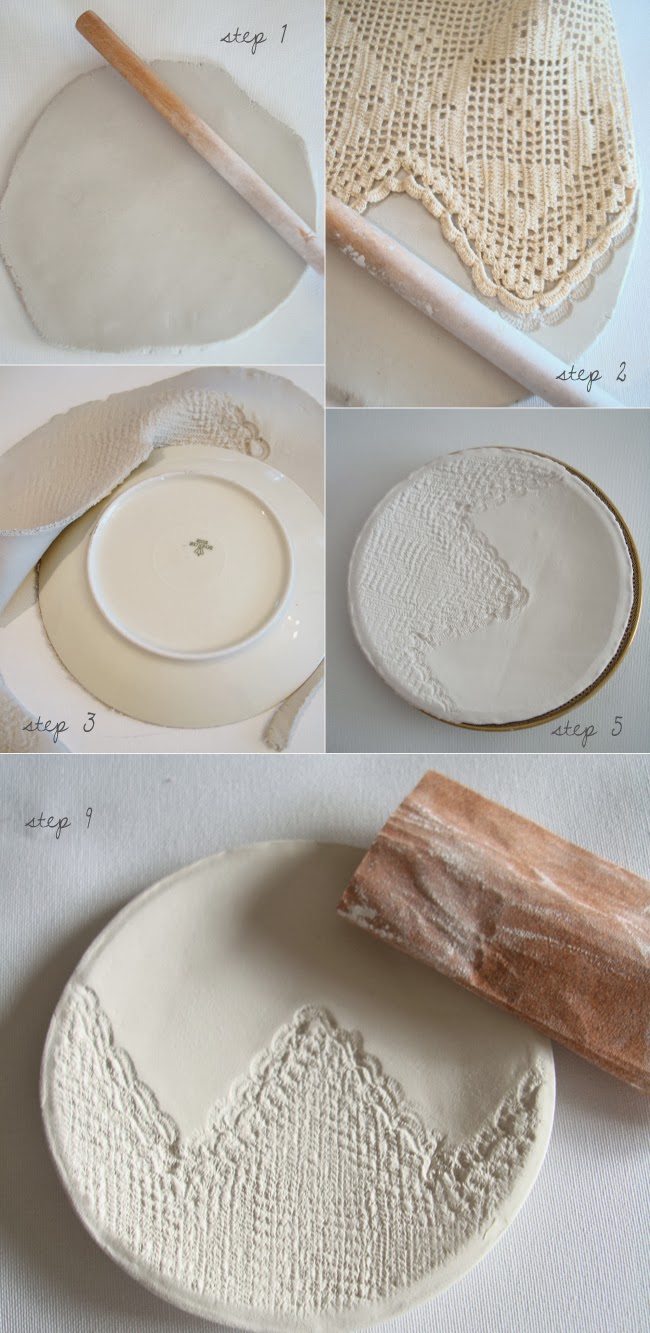 Step 3: Place your plate upside down on the clay and press firmly. Remove excess clay.