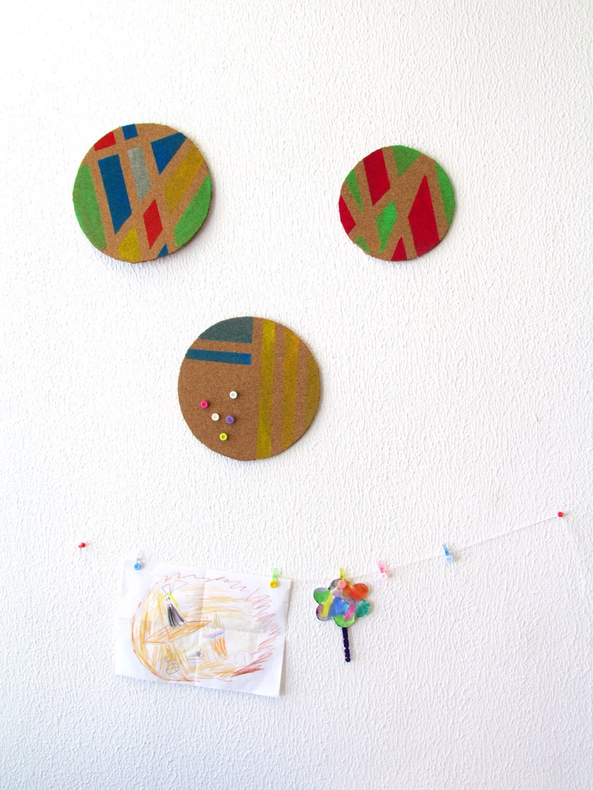 Πως σας φάνηκε; Δεν είναι γεμάτο χρώμα και αρκετά διασκεδαστικο; Ετοίμασα για το γραφείο μου τρεις τέτοιους πίνακες ανακοινώσεων απο φελλό για τις σημειώσεις μου και για μικρές ζωγραφιές της πριγκίπισσάς μου και φυσικά για να δωσω λίγο χρώμα στον λευκό τοίχο!