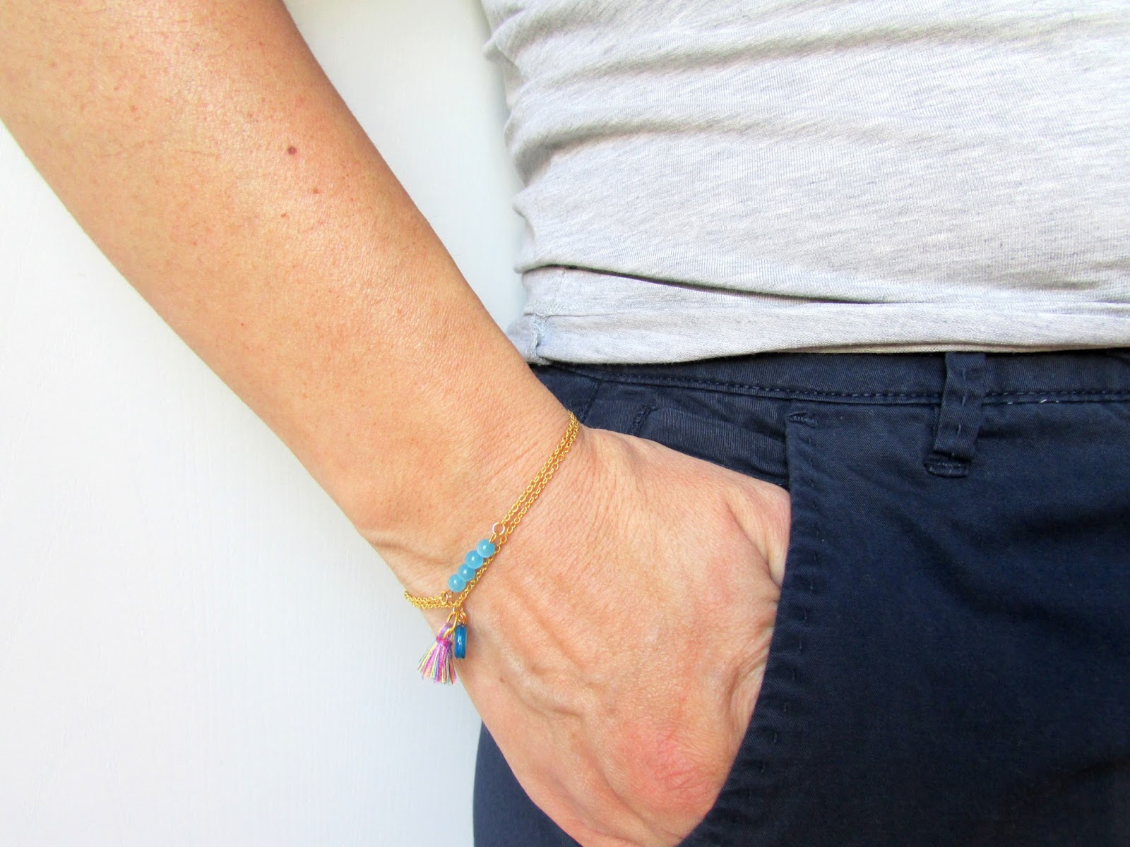 Summer is just the perfect season to enjoy wearing many jewels together in different styles, in many shades and colors and with many charms. I wanted to create something beautiful and unique for a great friend, so this bracelet was just perfect. In the trendy style for this period, the gypsy boho one. You know… chains, leathers, beads, tassels, charms and many more. But if you are not the greatest fan of this style, I am totally sure that this dainty tassel bracelet will change your mind!