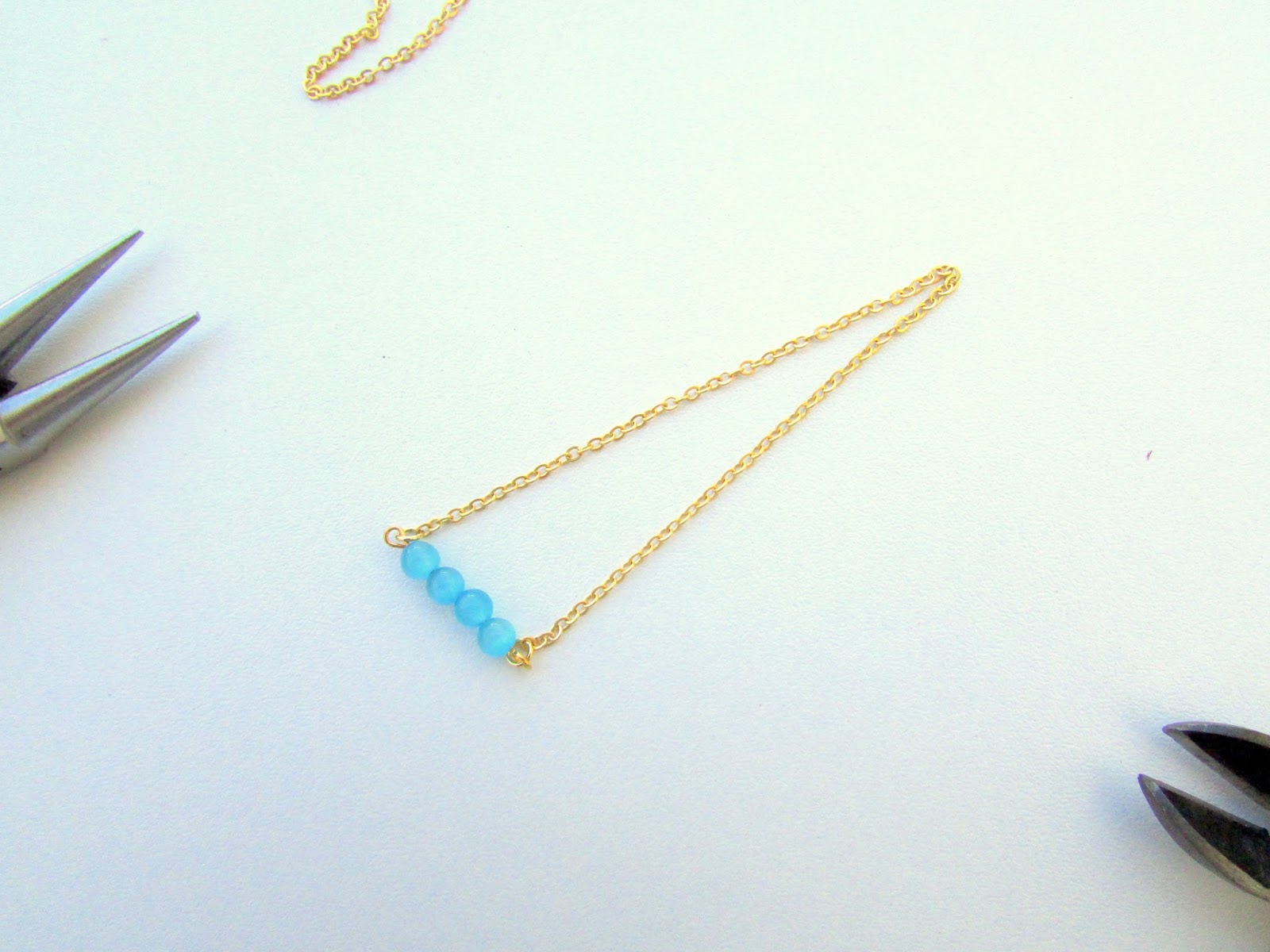 Cut the second chain piece exactly the same in length with the first one and connect it with a small jump ring.