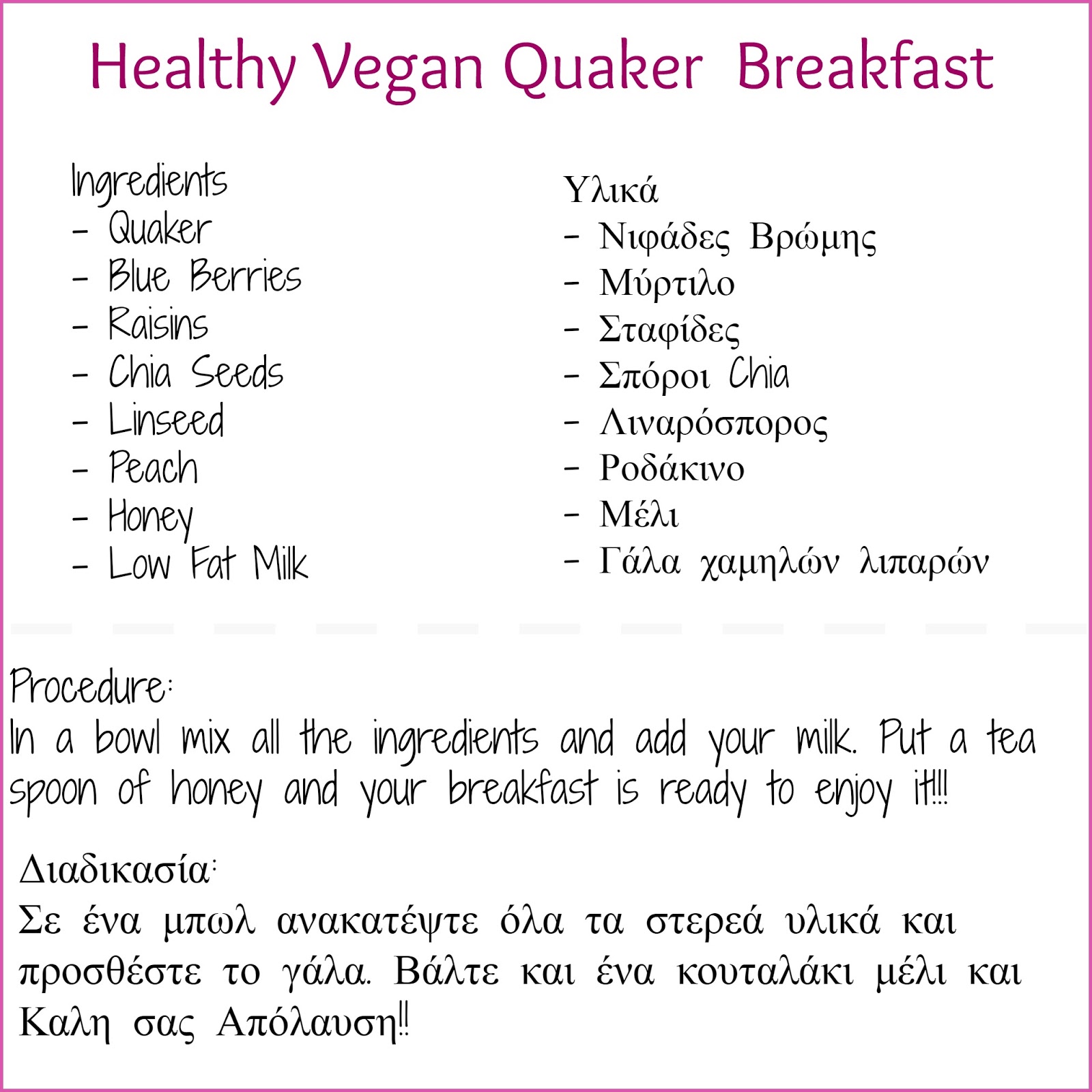 If someone was telling me that a few months later I would have in my breakfast Quaker and I would be thrilled about, definitely would laugh! Quaker? no Way! But this was a huge mistake, because since I have started my diet , I have also changed the kind of food I am having… to something more healthy and more vegan! So let’s have breakfast together!