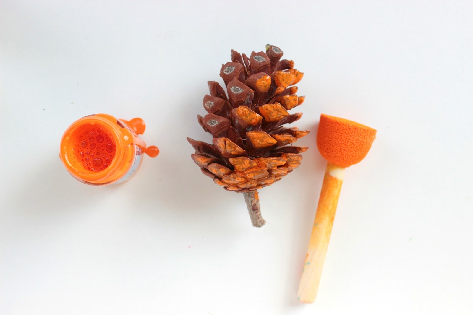 I didn’t want to paint the whole pine cone, just the edges and this kind of foam pouncer was just perfect for this. Let them dry and you are done!