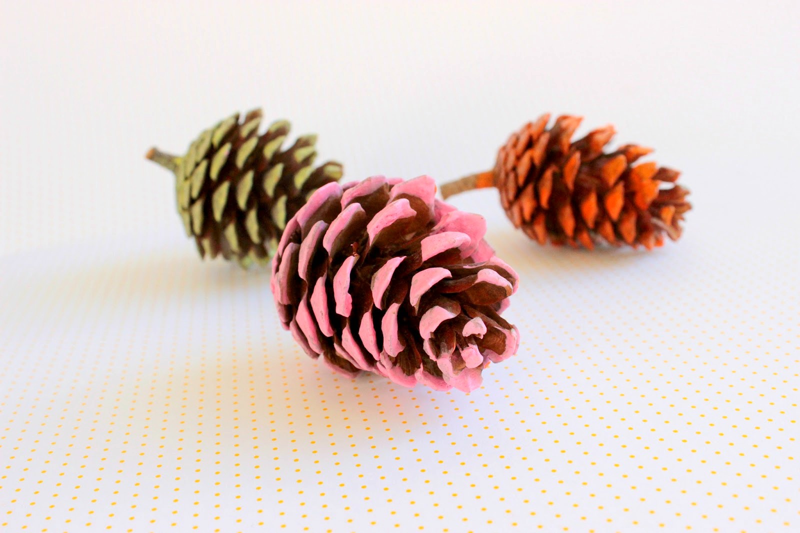 I am in love with nature and every time I have the chance to collect a small “souvenir” from our walks on the forests, I do it… so my home is full of pine cones and small woods. The perfect woodland decor, especially around my fireplace. Everything in brown and green and beige…but this period I desperatelly need color! And I did it… Painted Pine Cones for grey days!