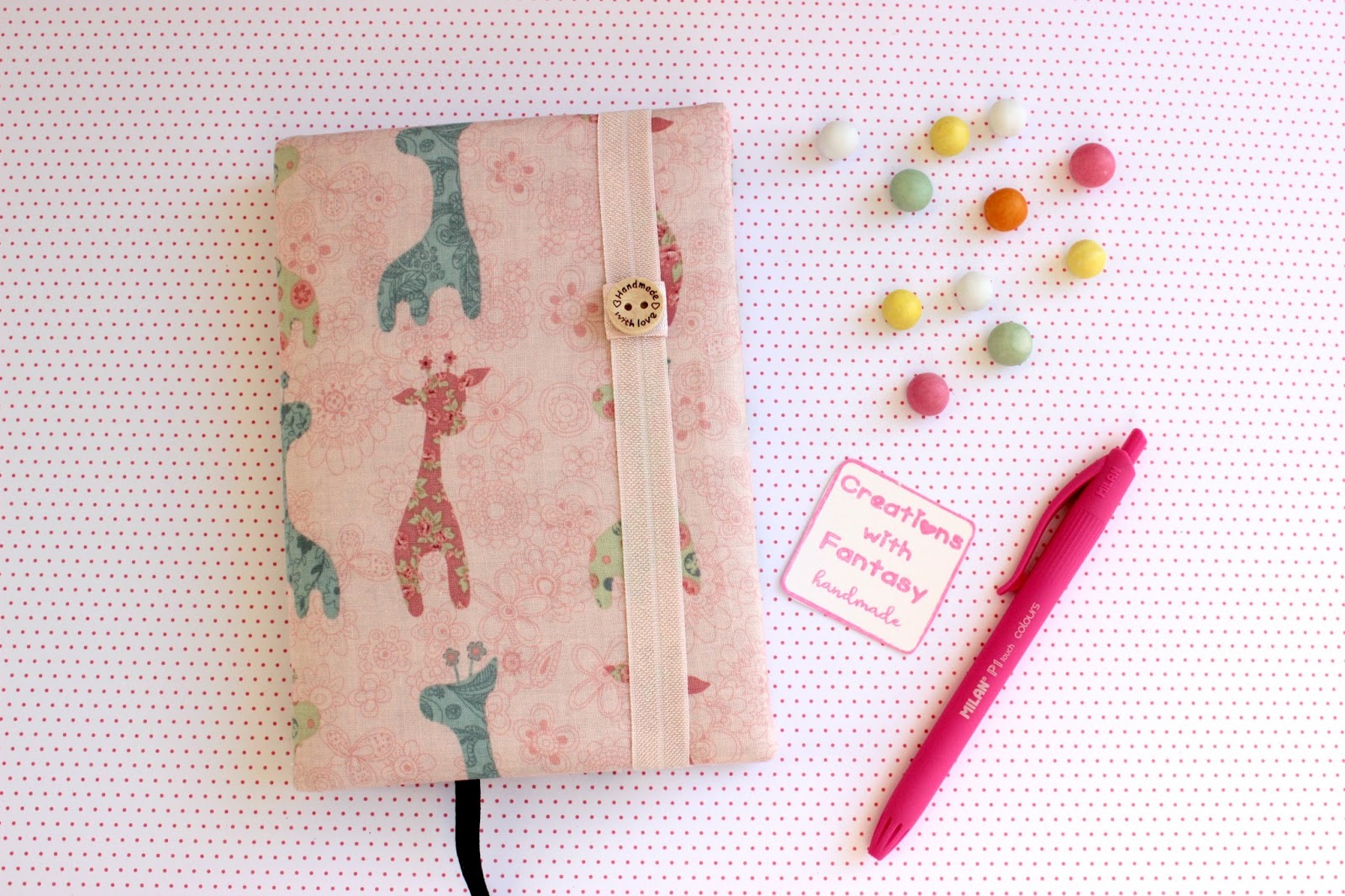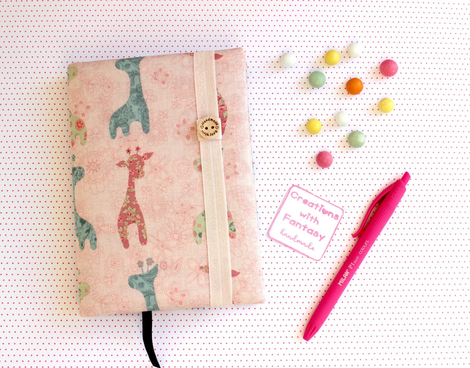 Last year I had a diary with floral elephants! But this year I prefered another animal…floarl again! Small, cute giraffes in pastel colors made from Creations with Fantasy, my beloved friend Athanasia! What I love in my diary? Too many things…. first of all it is fabric covered and with the fabric of my choice! Secondly it is soft! Oh yes, it is not the fabric just above the hard notbook but Athanasia made it a little bit soft and I love this feeling!!!! Last but not least, the elastic ribbon, which actually helps me to keep inside additional notes and spare papers without to be afraid that I will lose them. And because Athanasia already knows my passion with buttons, this year she added a really cute button on my elastic ribbon. In general, I adore this diary, it is my precious!!!!