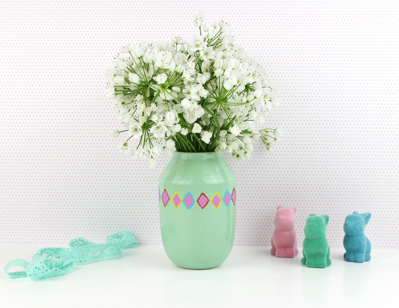 The DIY vase turned out so pretty and cheerful! I used to do stencilling. Your easy craft inspires me to try it again 🙂