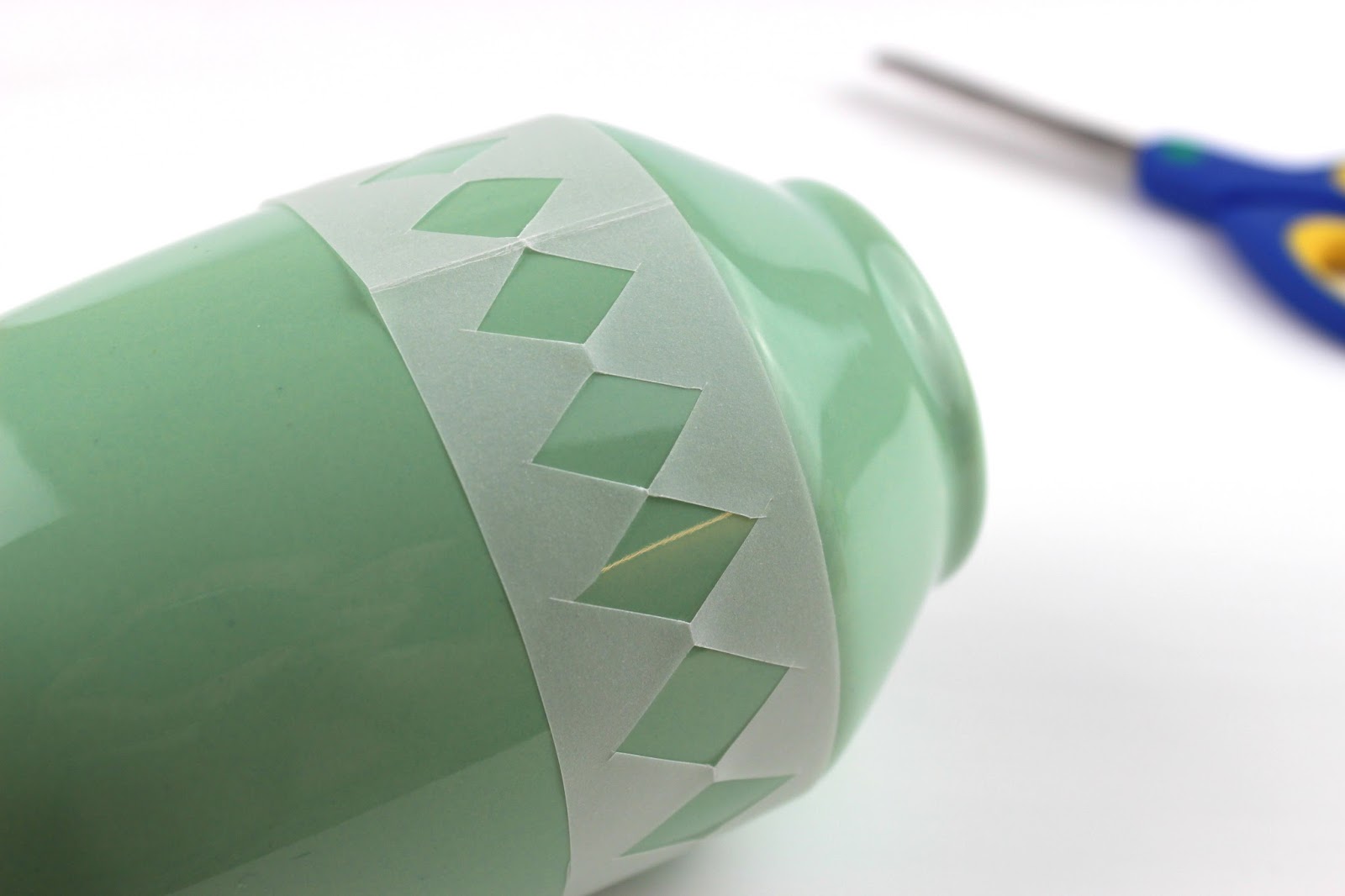 Uncoil the paper, put it on your vase and start painting. If you want to have your paper stable on your vase, just put some washi tape.
