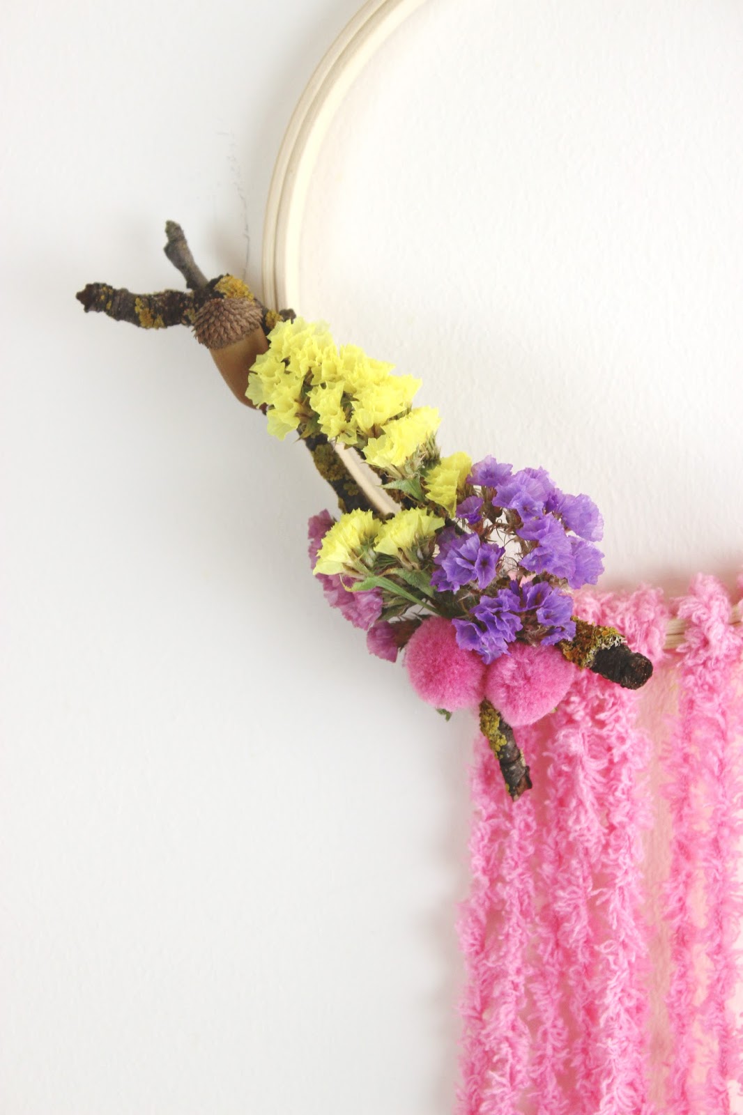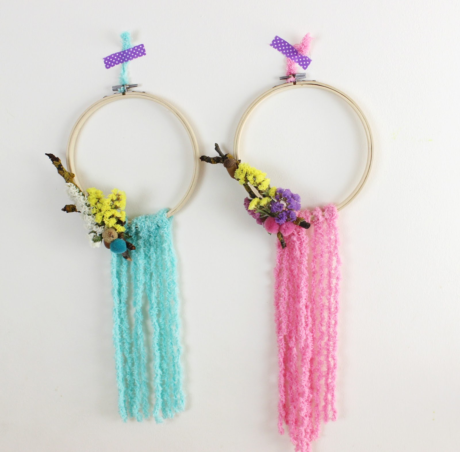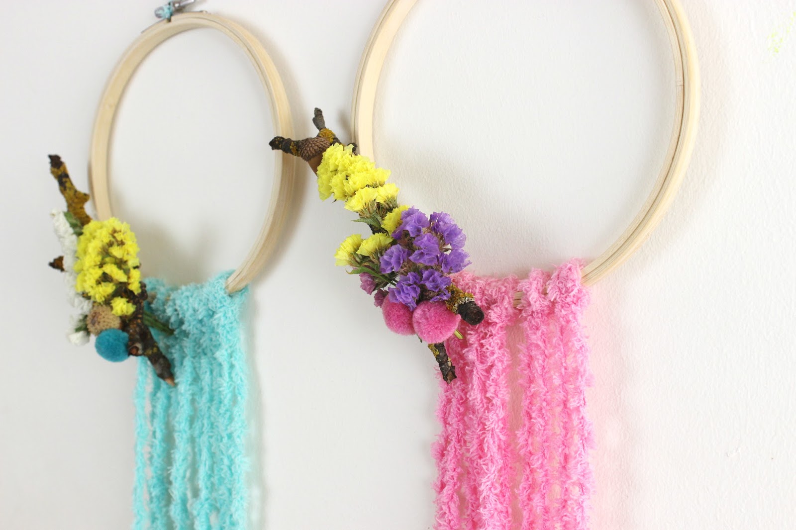 Diy Flower Spring Wreath with embroidery hoop. A beautiful idea to upcycle your embroidery hoop and to create a wreath with flowers and natural materials