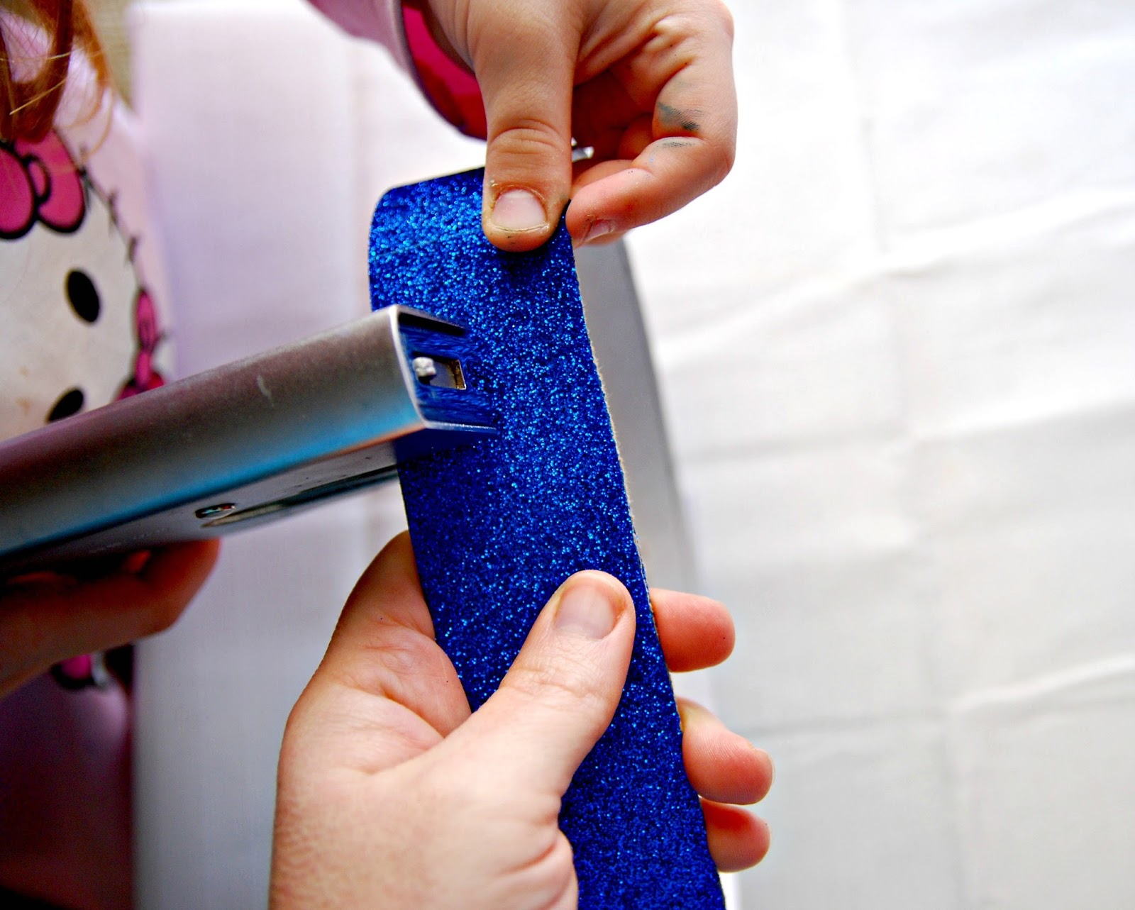 – 2 λωρίδες των 4εκ από αστραφτερό μπλε χαρτί