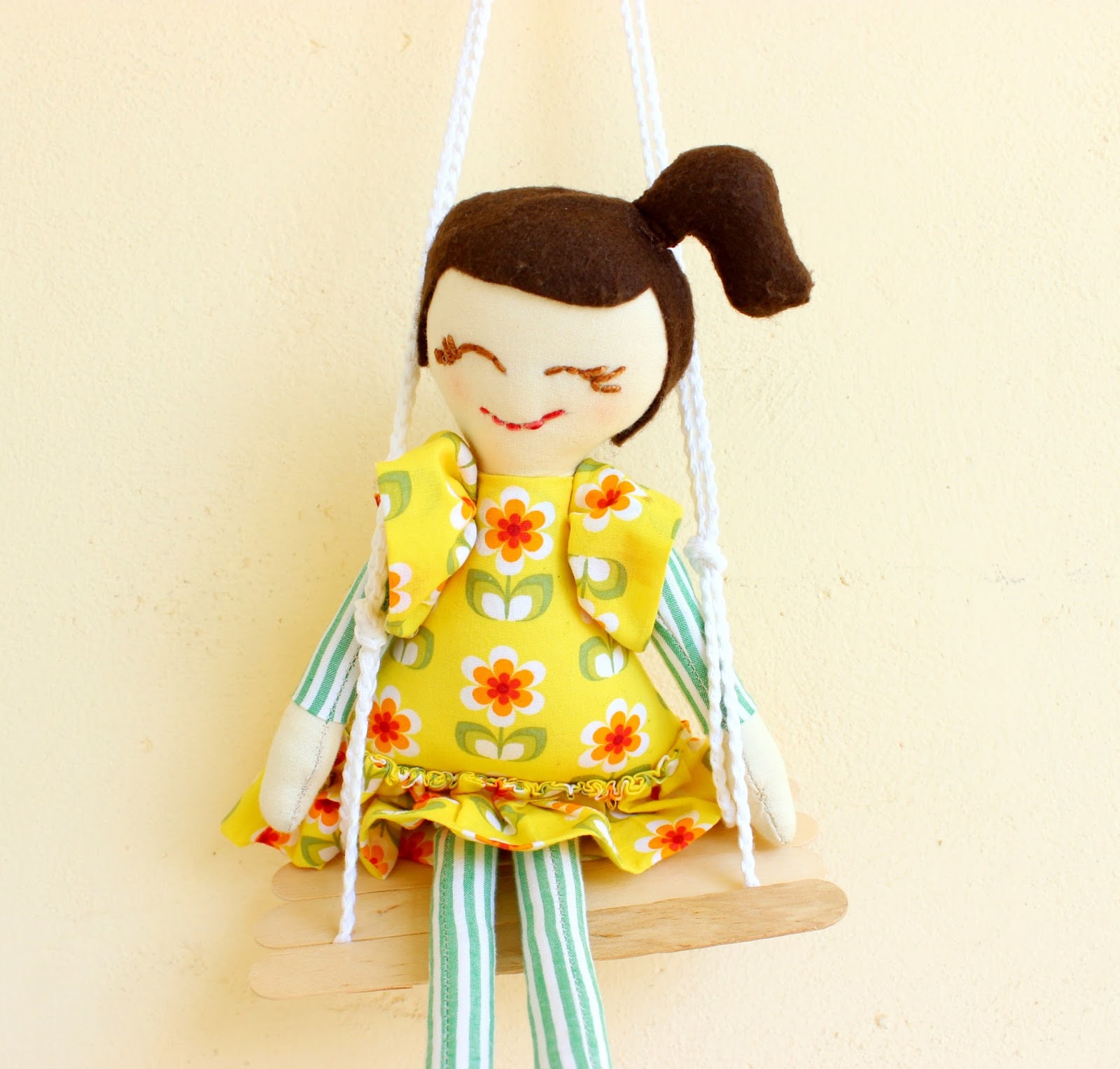 Η κούκλα είναι από τις χειροποίητες κούκλες που είχε ετοιμάσει η Άννα και που πραγματικά είχα λατρέψει όταν είχα στο blog της. Και φανταστείτε τη χαρά και την έκπληξή μου όταν μία από αυτές προοριζόταν για μένα! Εντάξει, ακόμα χοροπηδάω και βεβαια ακόμα παλεύω με τη μικρή πριγκίπισσα να μην μου την πάρει! Την έβαλα λοιπόν μέσα στο νεραιδοδωμάτιο μου, να κάνει κούνια ψηλά και να μου θυμίζει κάθε φορά ότι είμαστε ακόμα παιδιά! Να μην αγχώνομαι τρελά αλλά να ξεπερνάω τον εαυτό μου και να αφήνω το παιδί μεσα μου λίγο πιο ελεύθερο!