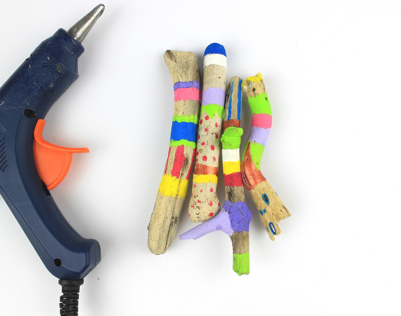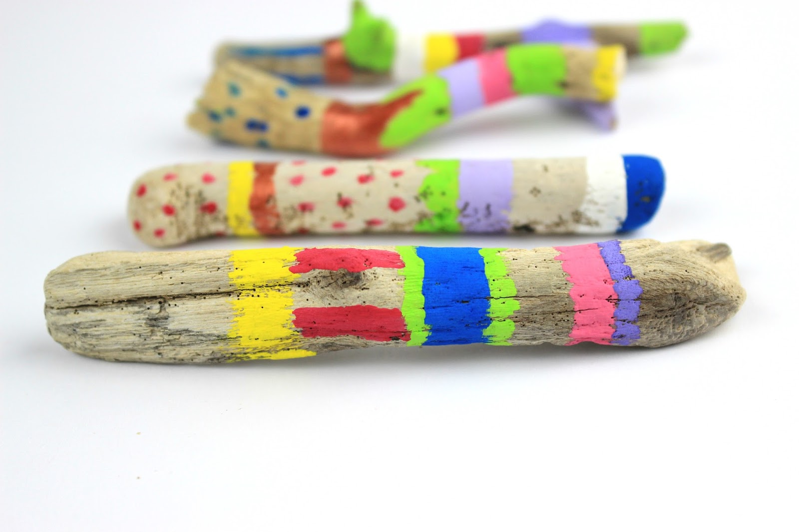 Ας ξεκινήσουμε με το διασκεδαστικό κομμάτι της κατασκευής! Χρώμα παντού! Απλά κάντε σχέδια πάνω στα θαλασσόξυλα με διαφορετικά χρώματα και χωρίς κάποιο ιδιαίτερο μοτίβο. Σε αυτό είναι πολύ καλοί δημιουργοί οι μικροί μας βοηθοί και σίγουρα θα δημιουργήσουν μικρά αριστουργήματα!