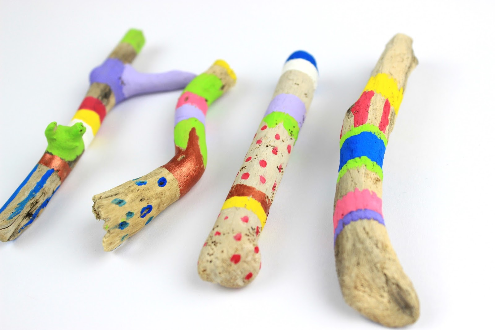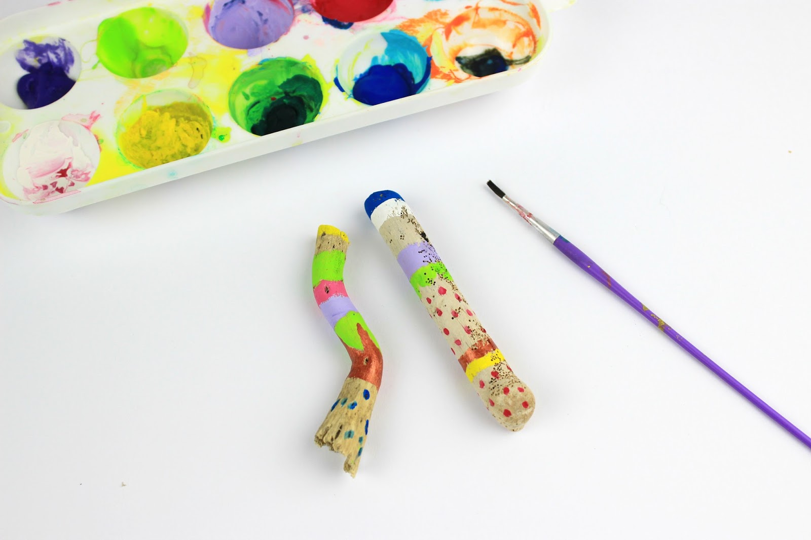 Ας ξεκινήσουμε με το διασκεδαστικό κομμάτι της κατασκευής! Χρώμα παντού! Απλά κάντε σχέδια πάνω στα θαλασσόξυλα με διαφορετικά χρώματα και χωρίς κάποιο ιδιαίτερο μοτίβο. Σε αυτό είναι πολύ καλοί δημιουργοί οι μικροί μας βοηθοί και σίγουρα θα δημιουργήσουν μικρά αριστουργήματα!